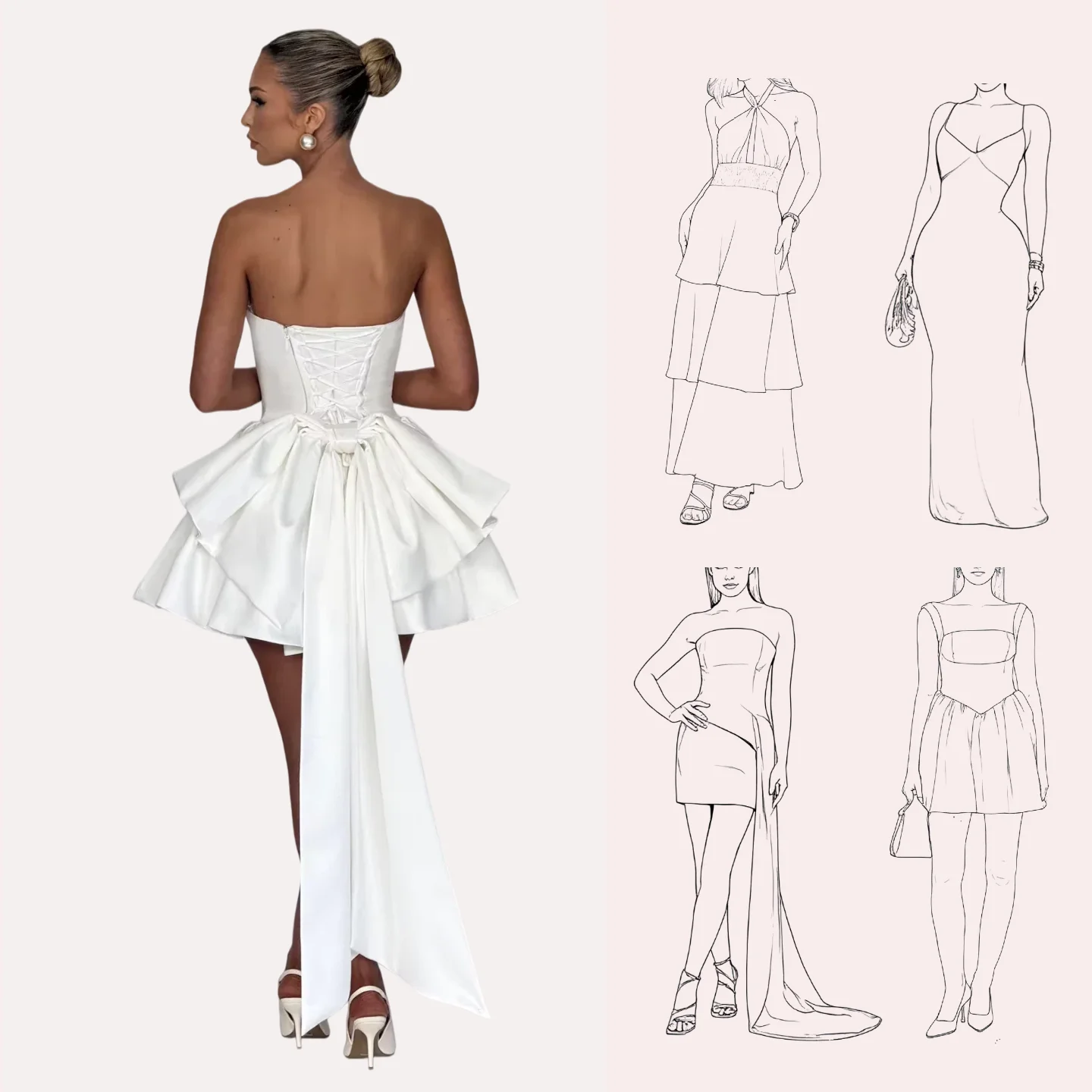 New Fashion Dresses Summer Holiday Lace up Bow Sundress Elegant Sexy Backless Prom Party Dress